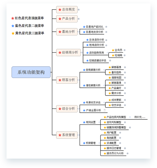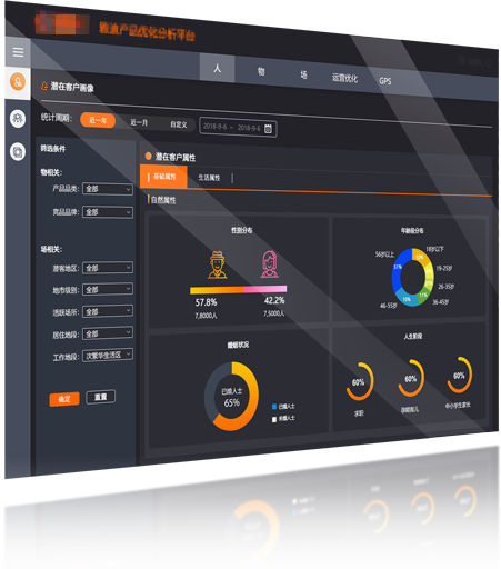 产品数据化管理线上系统名称《企业产品优化系统》,主要针对产品、生产基地、经销商以及顾客,即人、物、场三大方面进行数据化分析并给出科学决策建议;主要功能有产品分析、用户分析、经销商分析以及生产基地分析;