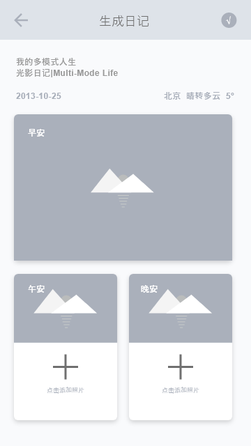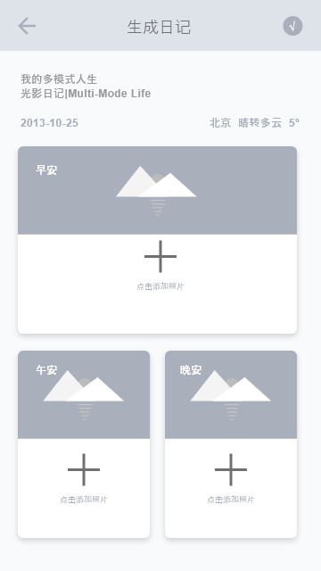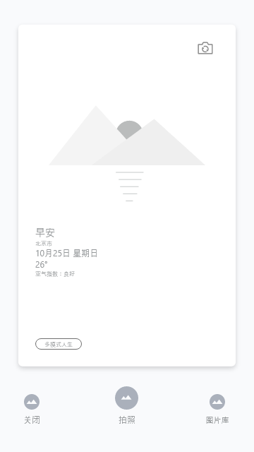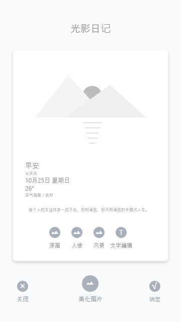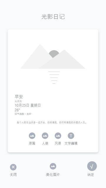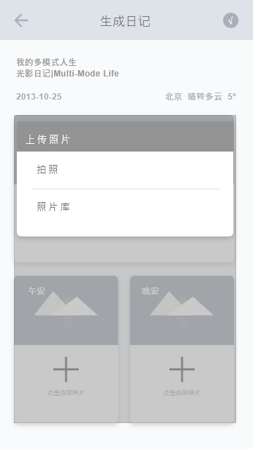 此项目是专为联想YOGA平板设计的一款pz类APP;主要功能是pz后自动添加照片心情和天气水印,scrj,并进行分享;